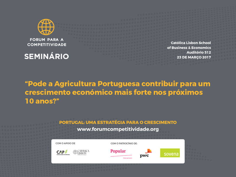 Seminário realizado ontem, dia 23/03/2017, organizado pelo Forum para a Competitividade, com o apoio da CAP – Confederação dos Agricultores de Portugal – e da Católica Lisbon School of Business and Economics