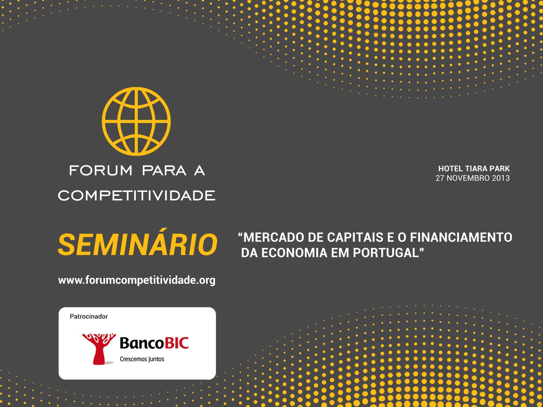 O Forum para a Competitividade está a organizar, para o próximo dia 27 de Novembro, um seminário sobre “Mercado de Capitais e o financiamento da economia em Portugal” (consulte o Programa).